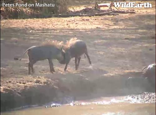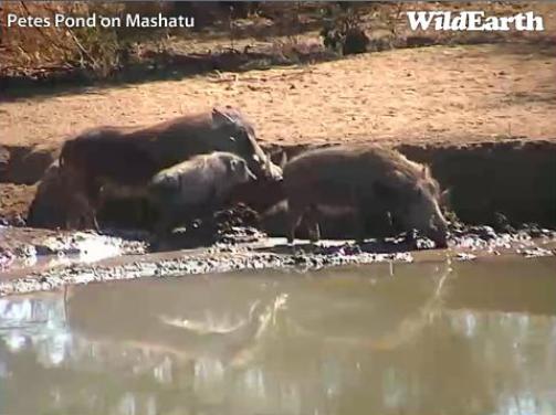 Pusdienlaikā uz dubļu vannu bija atnākusi kārpcūku ģimene ar lielo bosu priekšgalā un diviem maziem cūcēniem