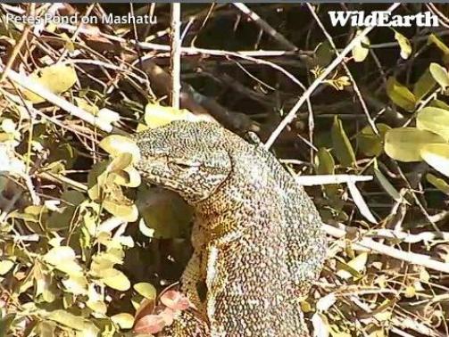 Vietējais varāns (Varanus niloticus) atkal izlīdis krastā pasildīties