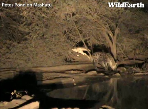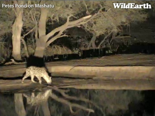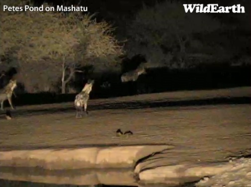 Pēc 20 krastā bija divas plankumainās hiēnas (Crocuta crocuta) , bet tās pārvietojās ļoti ātri - padzērās un iegāja krūmos, tāpēc operators īsti nevarēja izsekot ar kameru. Iznāca tikai viens kadrs.