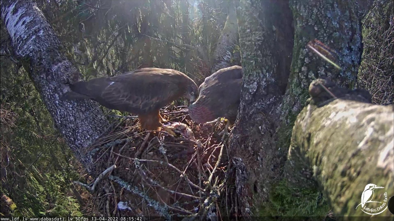 09.54 Golda ilgi nevar izšķirties ko darīt, grozās ar zaru knābī pa ligzdu, bet beigās tomēr 9.55 aizlido