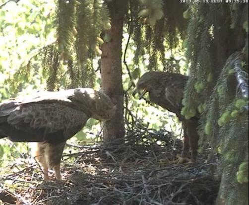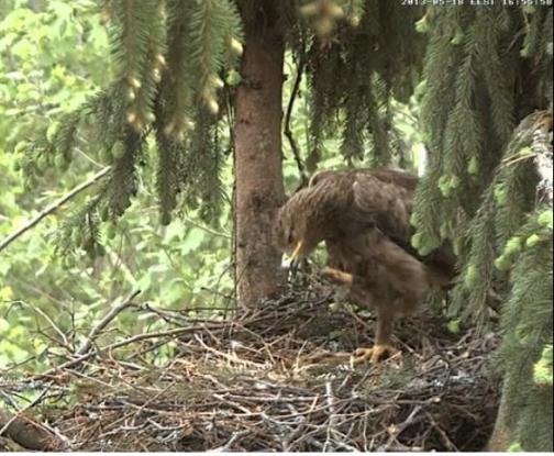 13:48 Mētra bija prom, 13:54 atpakaļ ar salmu kušķi knābī.