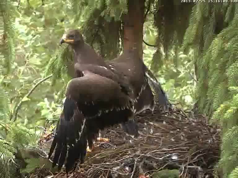 8.46 Tētis atnesa medījumu. Man likās kaut kas paliels, ko Mārcis neapēda, bet noglabāja ligzdā.