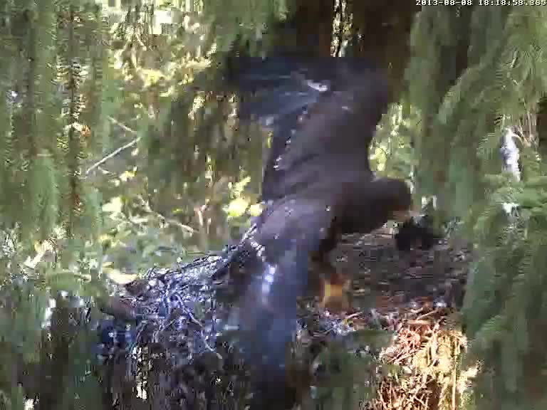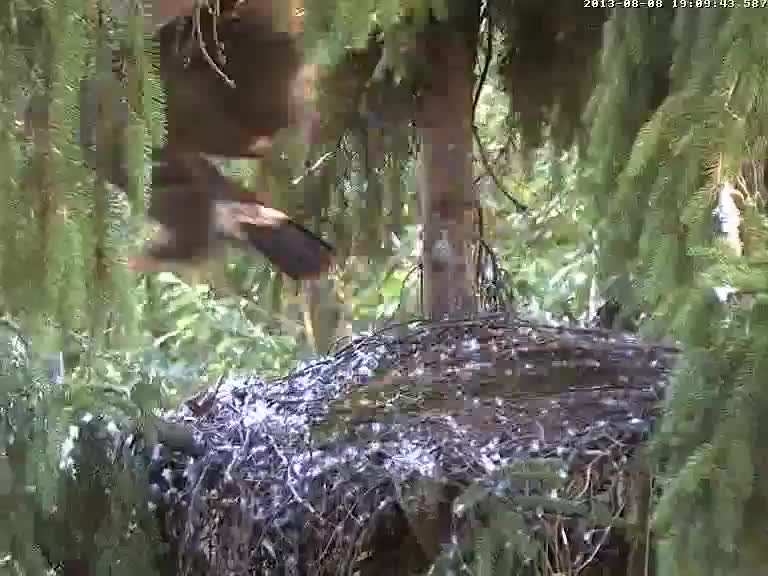 18:05 ligzdā vispirms ielido Mačo ar cienastu, pēc tam ar lielu troksni "iegāžas" arī Mārcis