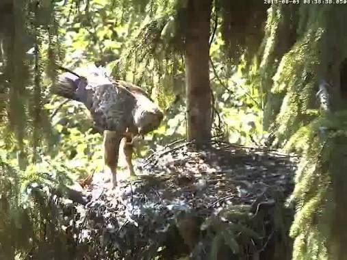 8.38 Mārcis ar Mačo ielec ligzdā, lai nodotu-saņemtu medījumu