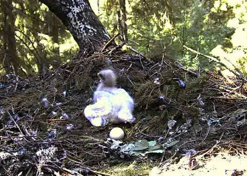 11.08 atlidoja tētis, kaut ko atnesa, varbūt vardi, lai gan saule tā ņirb, ka grūti saskatīt kas tas ir 11.58 Remo sēž ligzdā jau 50 minūtes un pieskata mazo 12.48 Remo joprojām ligzdā