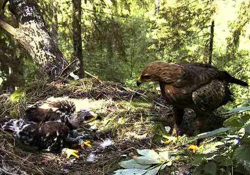 14.09 Remo atnesa medījumu, Tormi uzreiz ar spārniem virsū. Kad tēvs aizlidoja, Tormi salika spārnus normāli un var redzēt, ka atnests paliels grauzējs, kuru mazais plūkā.