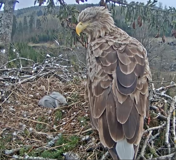 Durbē tanī brīdī bija ļoti spēcīgas vēja brāzmas. Bija neomulīgi vērot, ka ligzda spēcīgi šūpojās. Bet diezgan ātri beidzās.