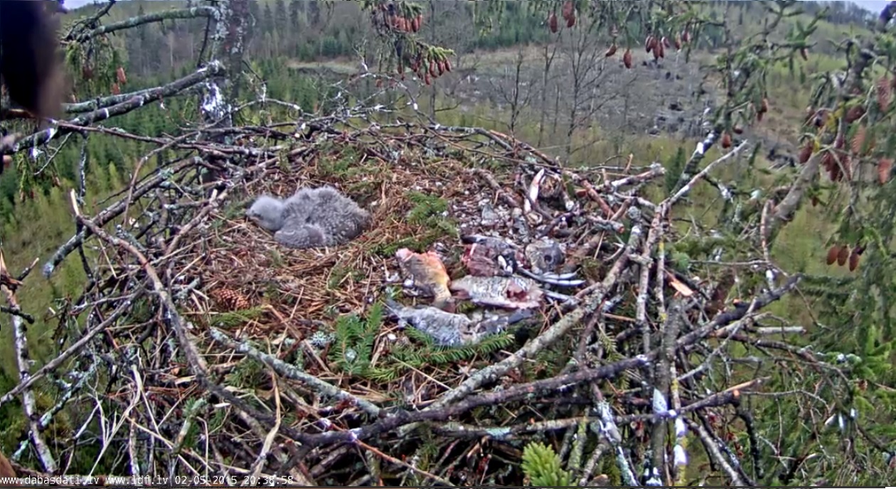 20:14 tēvs atnesa svaigas vakariņas. Tikko noķertu zivi, tā vēl virināja žaunas un locījās. Izskatījās pēc karpas. mamma uzreiz baroja ērglēnu. paps pavēroja procesu un pēc 2 min aizlidoja. Durbe pa kriksim turpina barot .