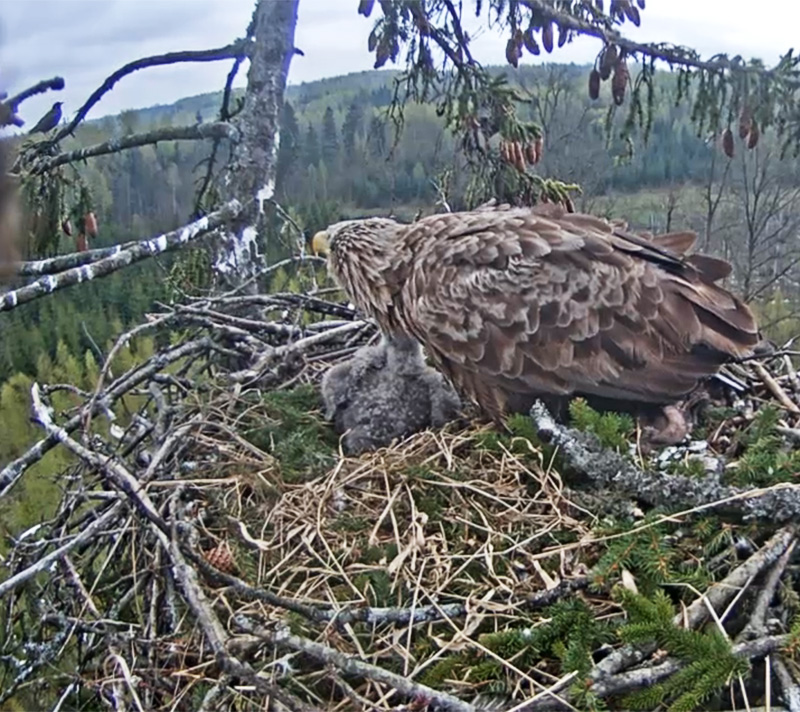7:20 Labrīt.Roberts ligzdā, tā nekustīgi sēž jau vismaz 15 minūtes, pagrozot vien galvu.