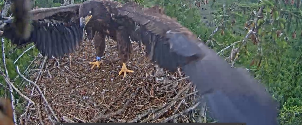 16:30 Labdien,visiem! Tikko izskrēju cauri visām 10 lapām,ko bijāt sarakstījuši no vakardienas pēcpusdienas--vareni,visi foto in video kadri :roll: Šobrīd viss ir klusi un mierīgi--trokšņa nav,lietus nelīst--Durberts stāv uz ligzdas malas un skatās tālēs zilajās,klausoties putnu treļļos :shock: Vispār,ja tā labi ieklausās,tad kaut kur tālumā kāds vizinās,bet tas nu galīgi Durbertam netraucē :lol: