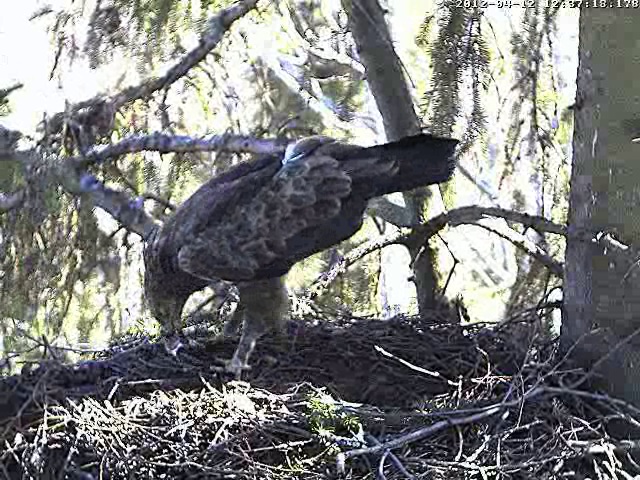 Mazo ērgļu mātīte ieradās 11.aprīļa pēcpusdienā, bet 12.aprīlī 12.37 ligzdā satikās abi ērgļi