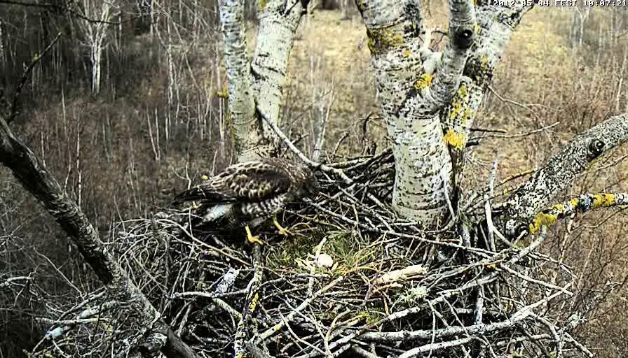 Tēviņš iekārtojās uz olas perēšanu uz dažām minūtēm, tad aizlidoja, un pēc minūtes mātīte jau bija atpakaļ.
