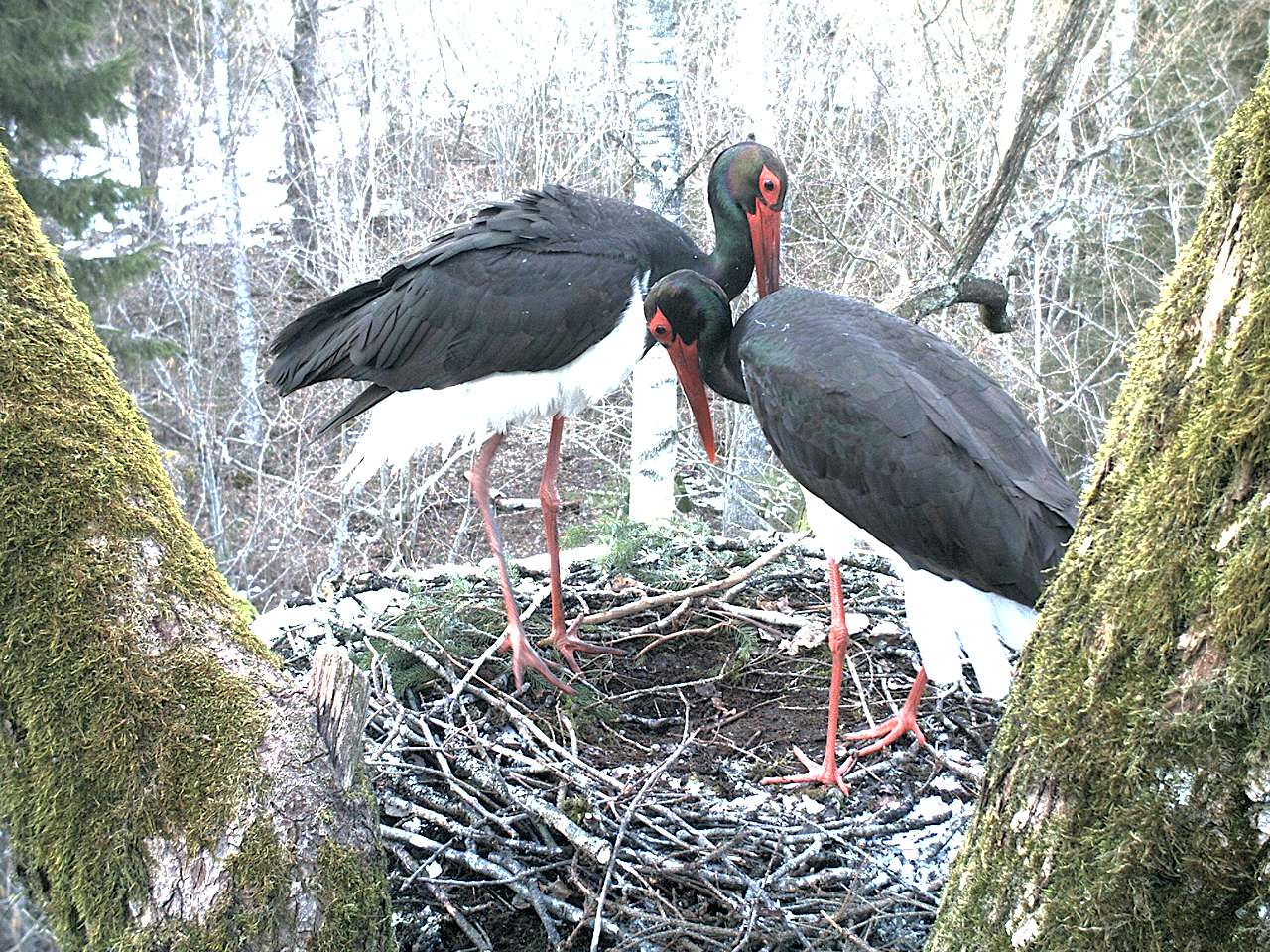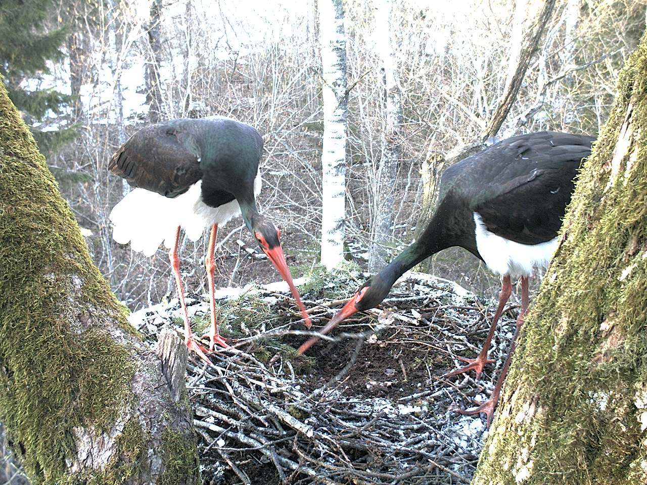 Izskatās, ka melnajiem stārķiem jau ir cālēni.