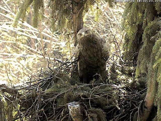 10:38 Mačo atkal paradījās ar zariņu, pabradāja pa ligzdiņu, pārbaudīja cik ērta un pēc minūtes arī Mētra ar savu zariņu ieradās. Mētrai šodien "dziedamais" noskaņojums