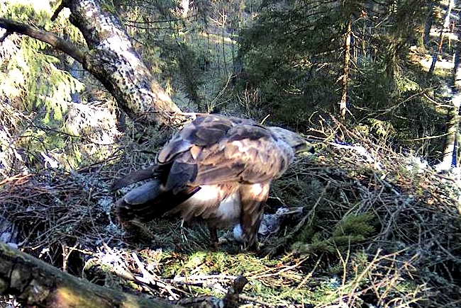 12.24 Remo atnesa kaut ko peļveidīgu, Tūle aizlidoja. Remo līdz 12.28 kārtoja ligzdu un tad aizlidoja pakaļ Tūlei