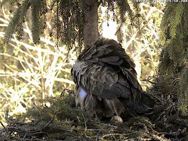 Mammuks sēdēja ligzdā no 15.15 līdz 17.40, tad aizlidoja