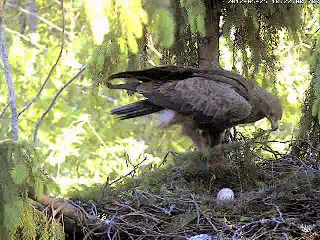 12:22 - Mētra uz mirkli prom no ligzdas, atgriezās, šķiet, ar mikroskopisku zariņu knābī.