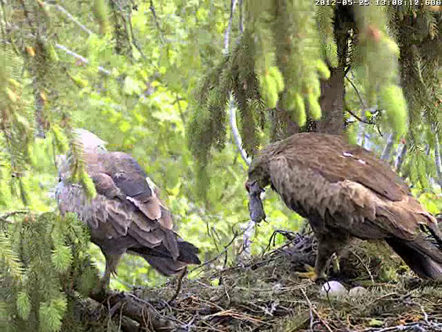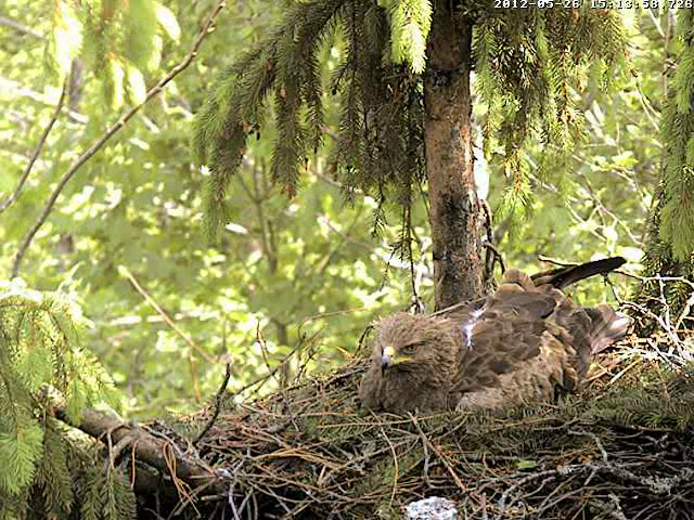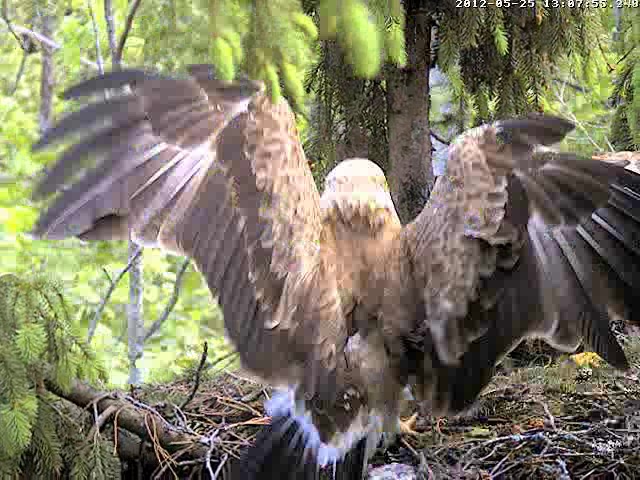 12:22 - Mētra uz mirkli prom no ligzdas, atgriezās, šķiet, ar mikroskopisku zariņu knābī.