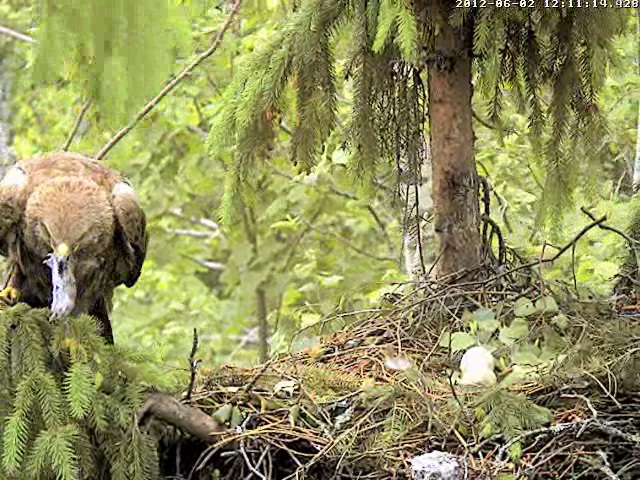 12:02 Mētrai kaut kas nepatīk... traki klaigā, skatās apkārt, izlidoja paskatīties vai patrenkāt.. drīz atpakaļ, staigā pa ligzdu un raugās uz visām pusēm. Laikam kaut kas draudīgs.