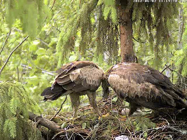 12:02 Mētrai kaut kas nepatīk... traki klaigā, skatās apkārt, izlidoja paskatīties vai patrenkāt.. drīz atpakaļ, staigā pa ligzdu un raugās uz visām pusēm. Laikam kaut kas draudīgs.