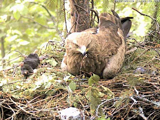 Apsveicu visus ar mazā ērgļa mazulīti! Tagad jāgaida, kad šķilsies otrs, tas varētu notikt pēc dažām dienām. Jautājums - varbūt kāds ir ierakstījis šos notikumus? Ja jā, lūdzu, izkopējiet šķilšanās fragmentu, varbūt pat kurmja pienaešanas brīdi, arī, kā Mētra apēd olas dzeltenuma maisu, kā izmetīs olu čaumalas, kā pirmo reizi pabaros mazuli. Šo tad nogādāšu līdz LTV, lai redzam arī kādu pozitīvo ziņu. Lieta tāda, ka arhīva materiāls ir ļoti apjomīgs un bez skaņas.