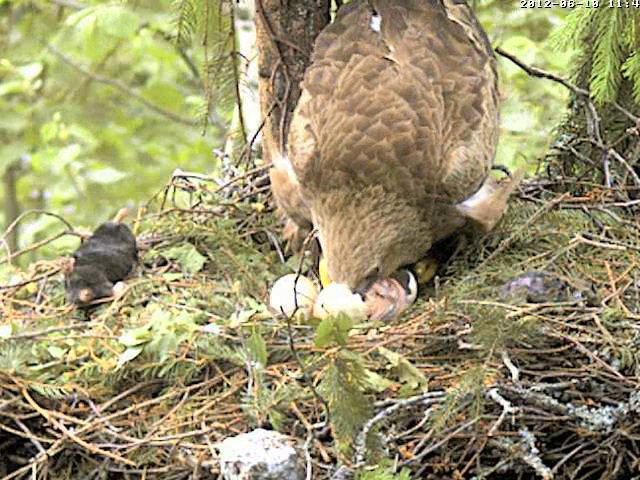 Apsveicu visus ar mazā ērgļa mazulīti! Tagad jāgaida, kad šķilsies otrs, tas varētu notikt pēc dažām dienām. Jautājums - varbūt kāds ir ierakstījis šos notikumus? Ja jā, lūdzu, izkopējiet šķilšanās fragmentu, varbūt pat kurmja pienaešanas brīdi, arī, kā Mētra apēd olas dzeltenuma maisu, kā izmetīs olu čaumalas, kā pirmo reizi pabaros mazuli. Šo tad nogādāšu līdz LTV, lai redzam arī kādu pozitīvo ziņu. Lieta tāda, ka arhīva materiāls ir ļoti apjomīgs un bez skaņas.