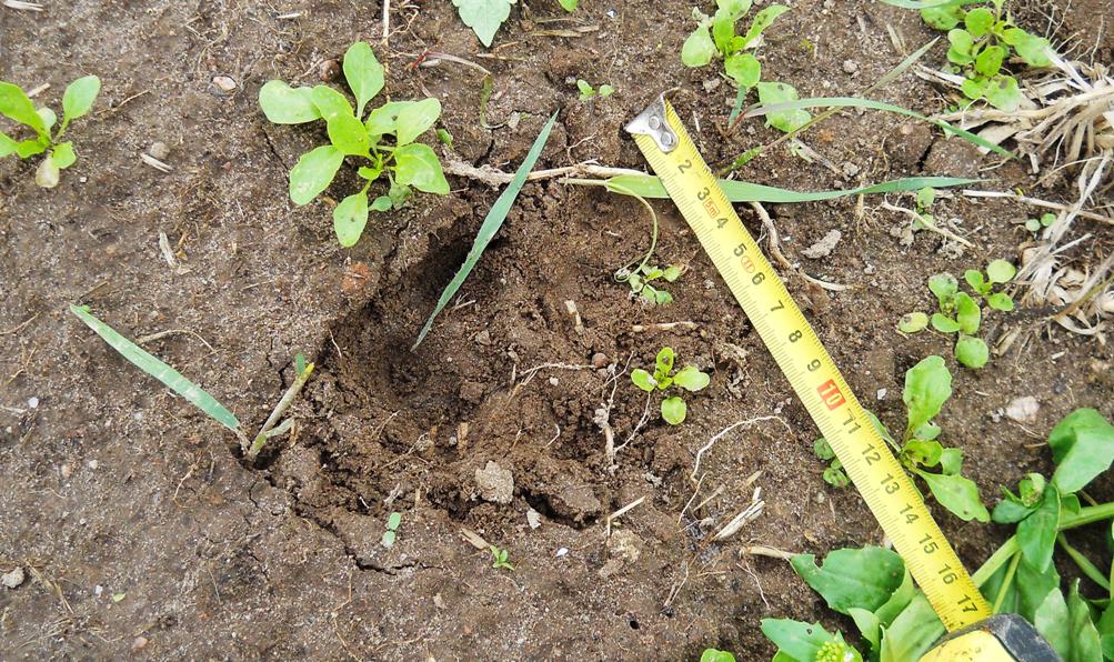 Biju purvā, kam pieder šīs pēdas? Lapas izmērs pie pēdas ir 3 cm. Zinu, ka šeit dzīvo vilki, bet neizskatās pēc vilka pēdas. Suņi šeit neskraida. Varbūt caunas?