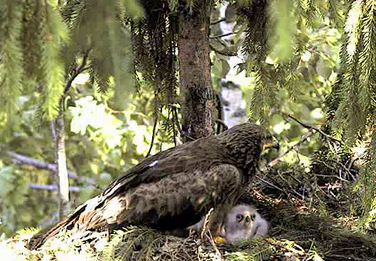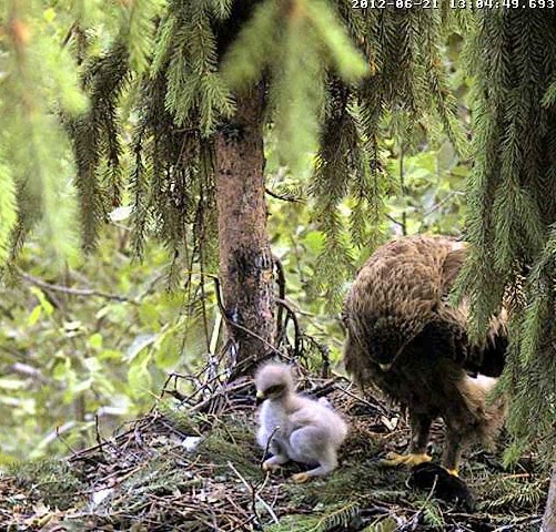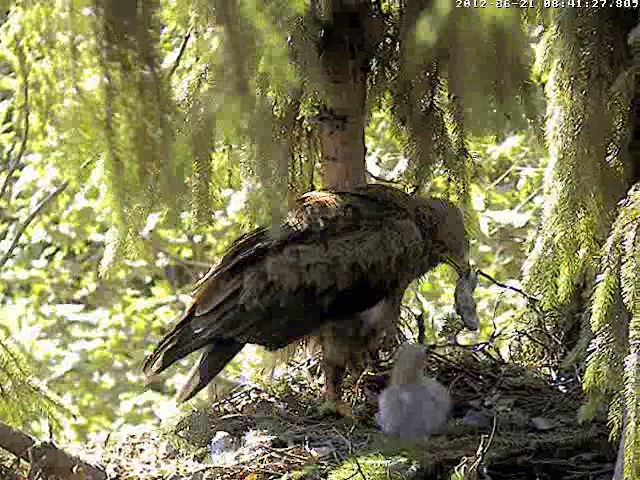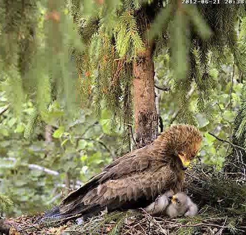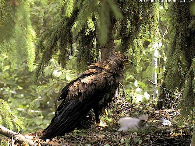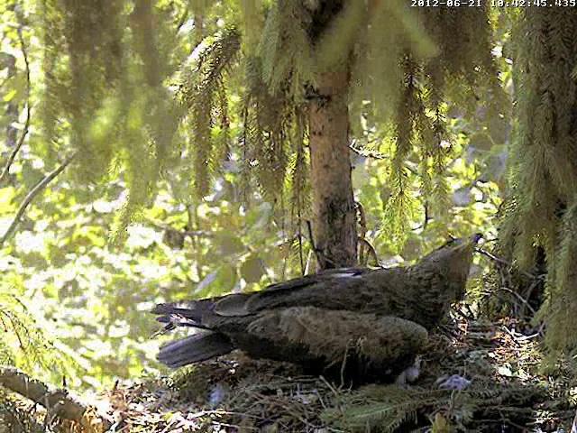 10.42 Mētru satrauca kāds, kas lidoja ap ligzdu - viņa ieņēma aizsardzības pozu un spalgi klaigāja.