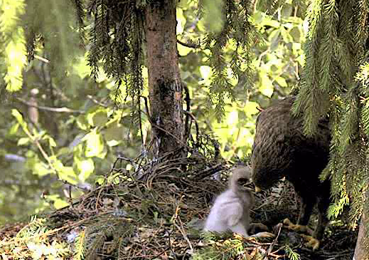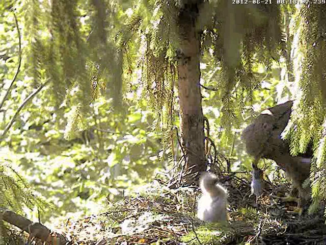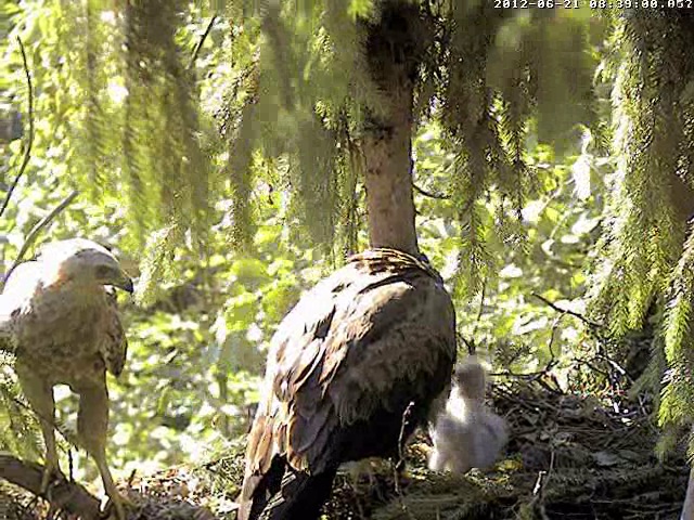 10.42 Mētru satrauca kāds, kas lidoja ap ligzdu - viņa ieņēma aizsardzības pozu un spalgi klaigāja.