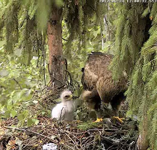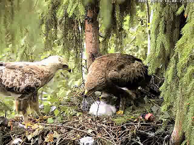 Ap 8.40 Mētra aizlidoja, atgriezās 8.51 ar vardi, kuru tūlīt sāka barot Mikam