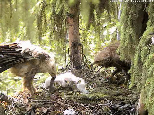 Labrīti, visiem!! 12:08 Pusdienas! Mētra ēd vardīti, Mikai negribas. Skatās kā mamma ieturas. Āaa, smukākie mīkstumiņi tomēr tiek arī mazajā knābī.