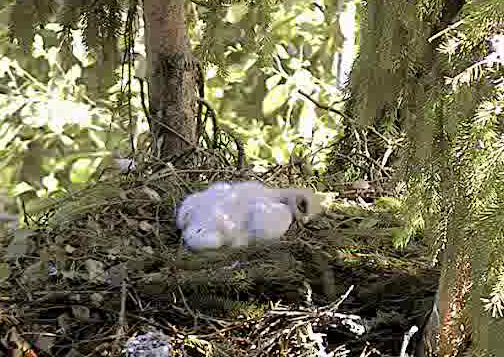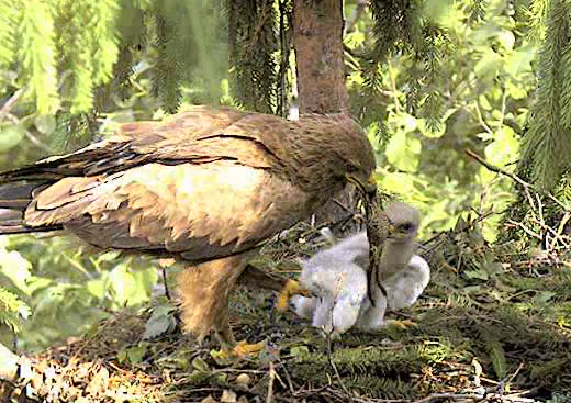 18.10 Atlidoja Mētra un apsēdās kaut kur tuvumā uz zara, Mačo prom. Pēc brīža Mētra ielidoja ligzdā ar vardi.