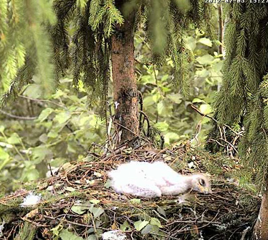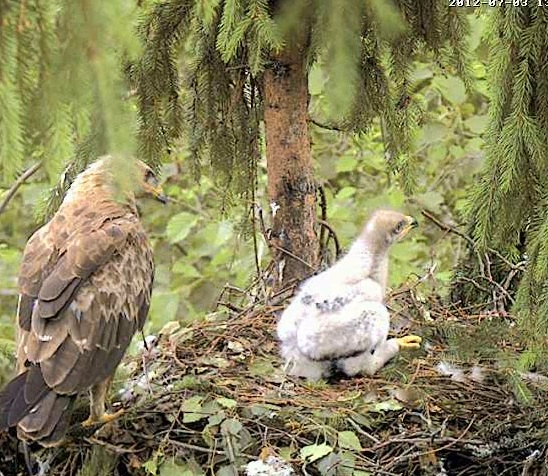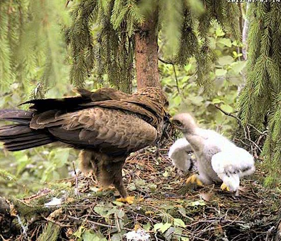 17.19 Lietišķā solī ieradās Mētra ar vardi knābī un tūlīt sāka barot Miku.