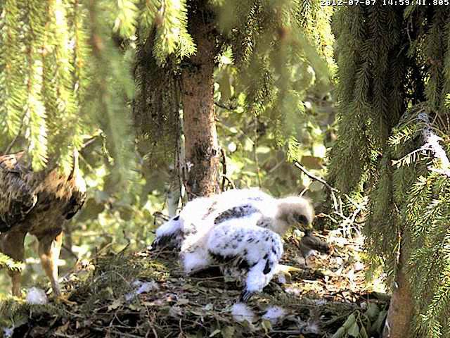 12.05 viņš atlidoja bez ēdiena, laikam gribēja ar bērnu patusēt kā vakar, bet ligzdā bija Mētra