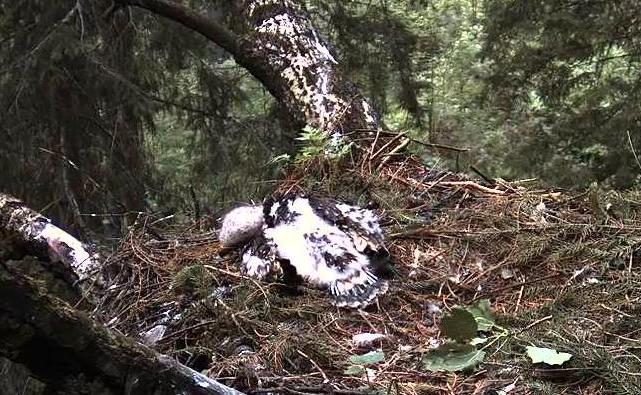 11:14 atlidoja Remo, bet šķiet, ka medījums aizmuka, jo viņš kādu brīdi cītigi kaut ko meklēja ligzdas sānu zaros, par izcēla gabalu, tad meta mieru un aizlidoja. Stefītis palika čīkstot.