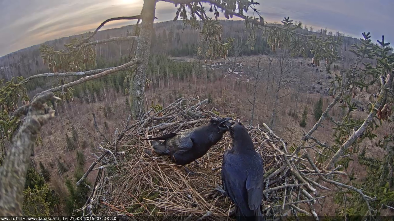 7:47--8:10 Kraukļi ligzdā maigojās,sen nebija redzēti (kopš aizvakardienas??) :lol: It kā savas ligzdas nebūtu,kur mīlēties,jālien citu guļamistabā :lol:Nu,cik var,jau 20 min. ņemās???? :o