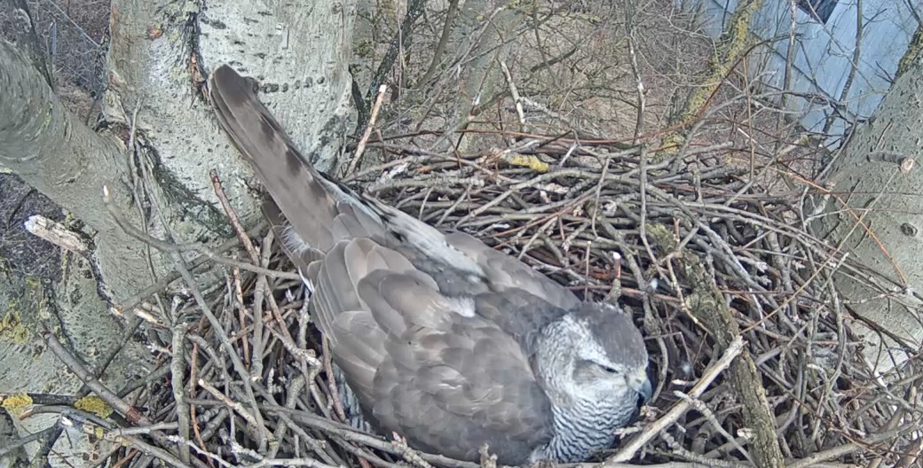 Iedomājos, kā tas varētu izskatīties, ja viņš viņai atnestu medījumu. Pirmkārt, tas nebūtu mūsu redzeslokā. Dzirdēt gan tā kā vajadzētu un viņas reakciju arī tā kā vajadzētu ievērot - ka viņa saklausa aicinājumu. Otrkārt, nez vai viņš plūktu medījumu, bet aprakstos par vistu vanagu teikts, ka viņi pirms maltītes rūpīgi noplūc ne tikai putnam spalvas, bet arī dzīvnieciņus noplūc. Tātad tam vajag laiku. Treškārt - tie, kas apkaimē strādā vai staigā (vai ligzdas liek), to noteikti varētu novērot, jo lapu vēl nav, spalvas varētu klāties arī zemē, turklāt vistu vanagi Rīgā nejūtas cilvēku traucēti.
