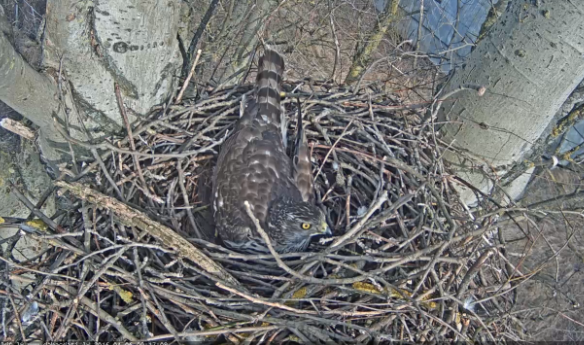 9:23 Ir Misters atpakaļ. Mīcās virs olām. Pagrozīja olas un piekārtoja bišku ligzdu. Stāv virs olām.