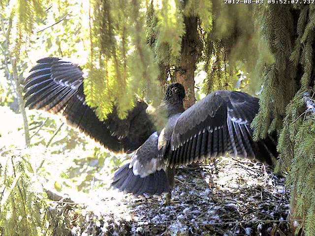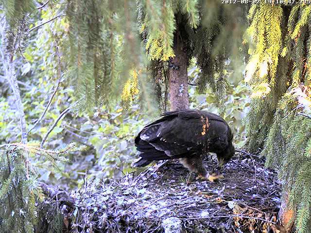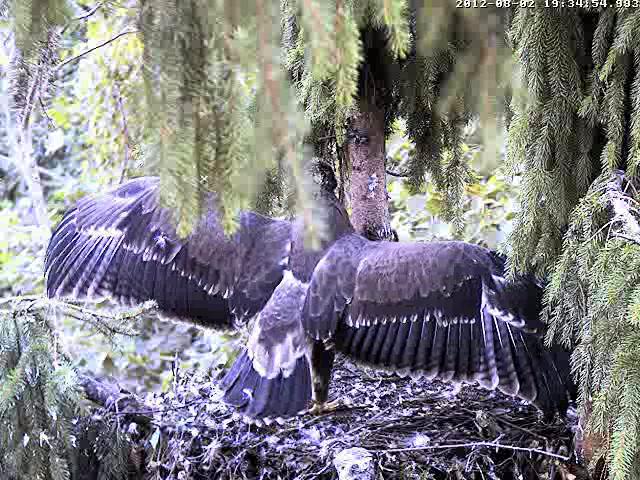 Nesagaidot bērnu vecāki sāk izmisīgi kliegt, var redzēt, ka viņiem ir panika, tad viņi aizlido mežā skaļi saukdami bērnu. Līdz mazais brašulis kaut kur atbild mammai un tētim. Sākumā vecāki piebaros bērnu mežā kamēr jaunais pats mācās medīt. Tad pienāks septembris un ērgļi dosies uz Āfriku. Viņi nelidos kopā, septembrī ģimenes dzīve beidzās līdz nākošajam pavasarim.