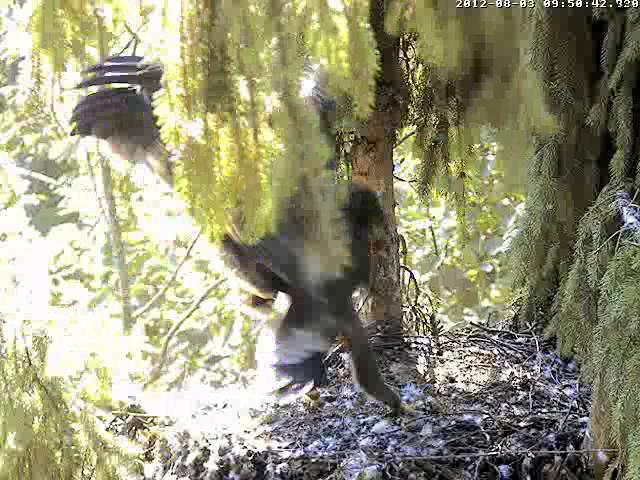 10:26 labrīt! Miks paknābj egles skujas kreisajā puse un pēta, kas notiek lejā, sak - tie man traucē kāpšanai uz lielā zara un gaidāmajam lidojumam. :lol:
