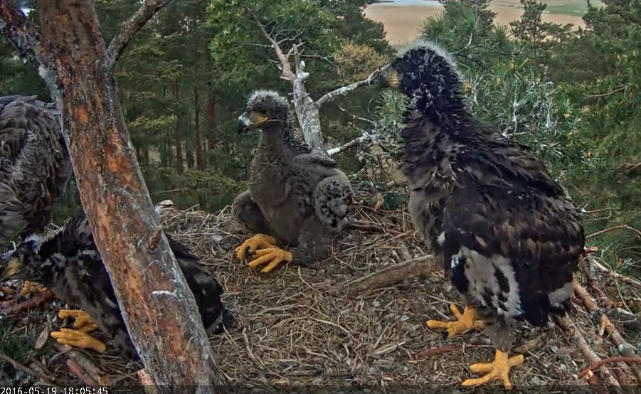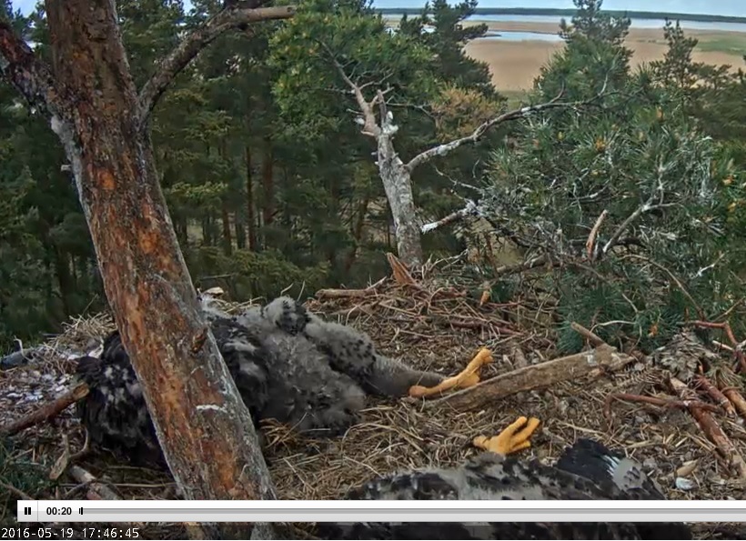 Jā, pa labi bija lielais, gulēja. Mamma baroja vidējo un mazāko pirms kautiņa. Lielais ēst negribēja. Atlidoja Uku ar to zaru, ieriktēja un tad kautiņš, jā Sandra L rakstīja.Sunshine wrote:Sandra L, vai pa labi bija lielais? Pontu bildītē 15:04 izskatās, ka tas pa kreisi ir stipri melnāksSandra L. wrote:Man izskatījās, ka sākums bija, ka kāds tur nevarēja līdzsvaru noturēt, sāka gāzelēties un uzgrūdās vienam, otram virsū. Tad sākās atpakaļ knābšana. Iesaistīti bija visi. Pēdējais punktu pielika lielais, kas pa labi. Bet varbūt pašu sākumu riktīgi neredzēju. Pat nedomāju, ka sanāks tāda plūkšanās