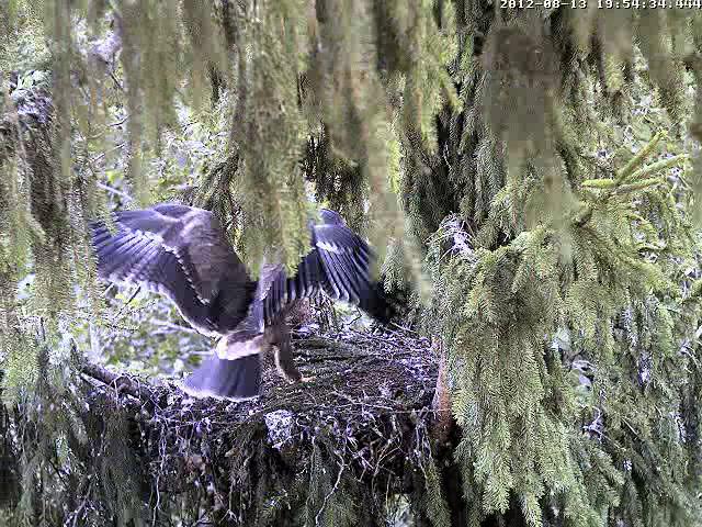 Tāli, tas Mika lidojums bija pēc tā pārgaismojuma. Bija ļoti labi redzams, kā viņš no ligzdas rauj uz mūsu pusi.