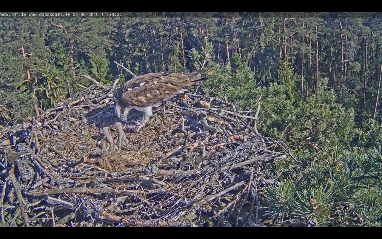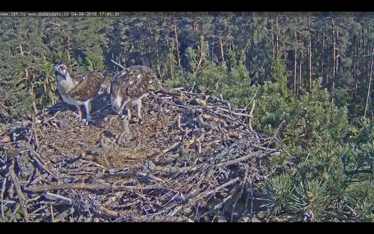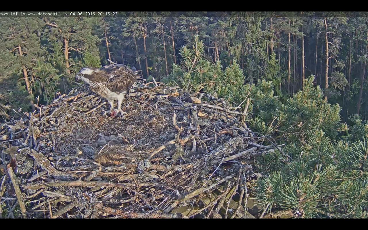 17:45 Jumis ielido ligzdā un pārliecinās, ka viss kārtībā. No iepriekš atnestās zivs nekas gandrīz nav atlicis, tāpēc Jumis odas gādāt sev jaunu zivi.