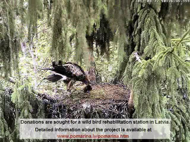 21.41 Viens no ērgļiem ir vai nu ligzdā vai blakus ligzdai uz zariem