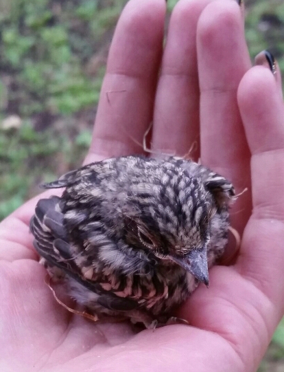 Šitādu raibu putnēnu noteikšana ir nepateicīga lieta. Ja vēl ligzda būtu zināma, no kuras viņš izlaidies, būtu cerības, bet tā - nav variantu. Pareizākais ir viņu nolikt atpakaļ vietā, kur viņs savākts, un skatīties kādi vecāki lido viņu barot. Pēc vecākiem noteikt sugu nav problēmu. Ja viņš atrasts uz zemes, vajadzētu to novietot uz kāda paaugstinājuma, kur plēsejiem grūtāk tikt klāt.