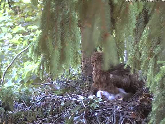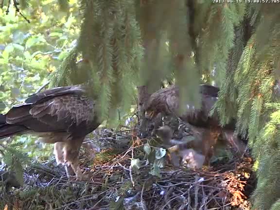 18:11 Mētra piecēlās, lielais viņai līdzi. Vispirms skatījās uz mammu, vai nedos ko ēst, tad atkal sāka plūkāt mazo. Mazais aizbēga pavisam uz ligzdas malu.. tiešām labi, ka lielais vismaz nedzenas viņam pakaļ.