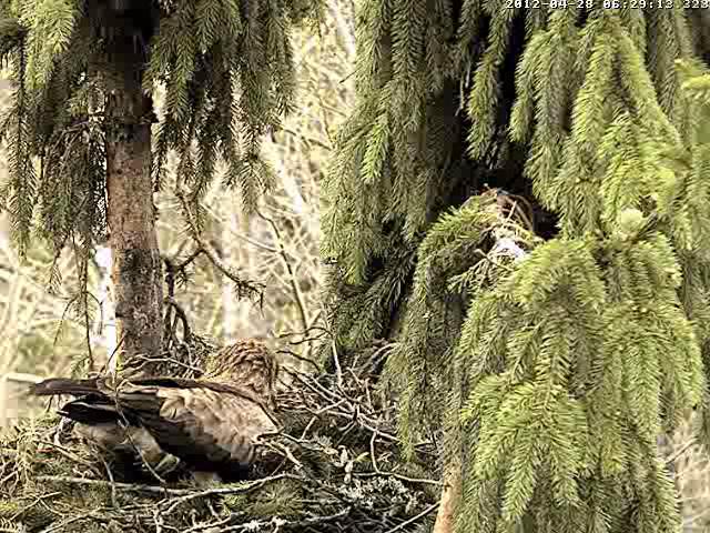 Īsi pirms 6:30 bija atlidojusi Mētra ( ??? ) ar zaru, piekārtoja ligzdu un apsēdās iemēģināt to.