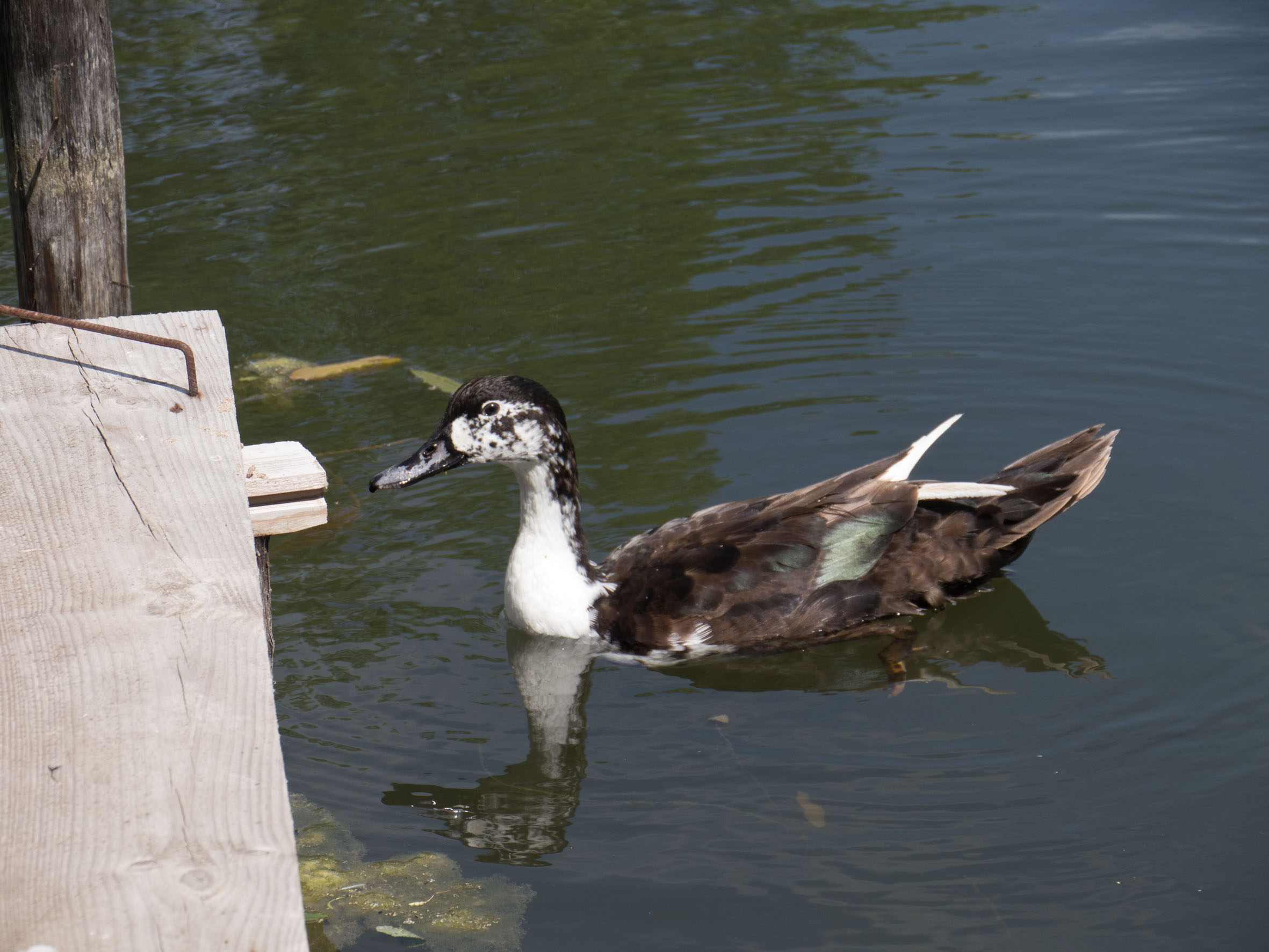 kurmis wrote:Neprotu noteikt pīles sugu, kas apmetusies mana brāļa mājas dīķītī laukos un droši nāk pie mājas saņemt graudu devu vakaros. Galvas augšpuse melna, ap acīm balts ar melniem plankumiem, kakls priekšpusē balts, mugura brūna ar melnu un nedaudz zilganzaļu spalvojumu. Pievienoju foto.